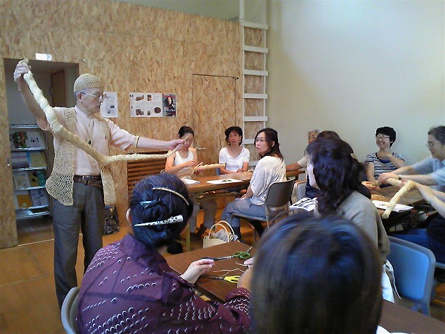 素材ラフィアの扱いや、コイリングの基本を教わりました。